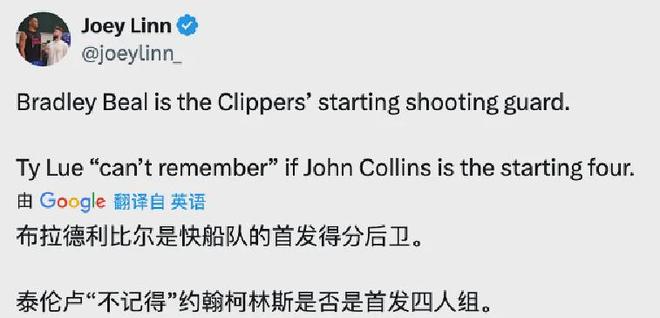 值得一提的是,25-26赛季为科林斯的合同年,薪资为2658万美元,他必须在快船有所作为,无论担任首发还是替补都得倾尽所有,才能为自己明夏争取到一份理想的新合同。